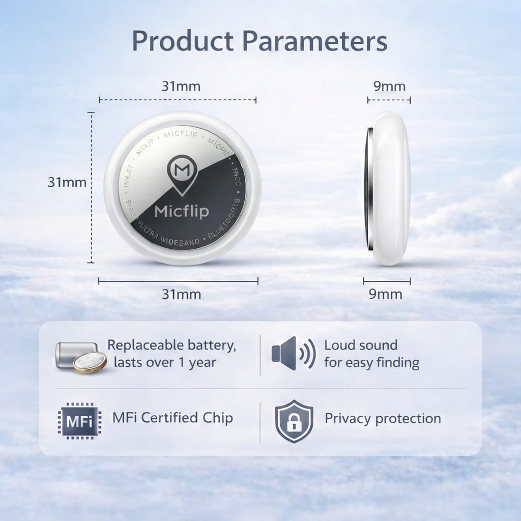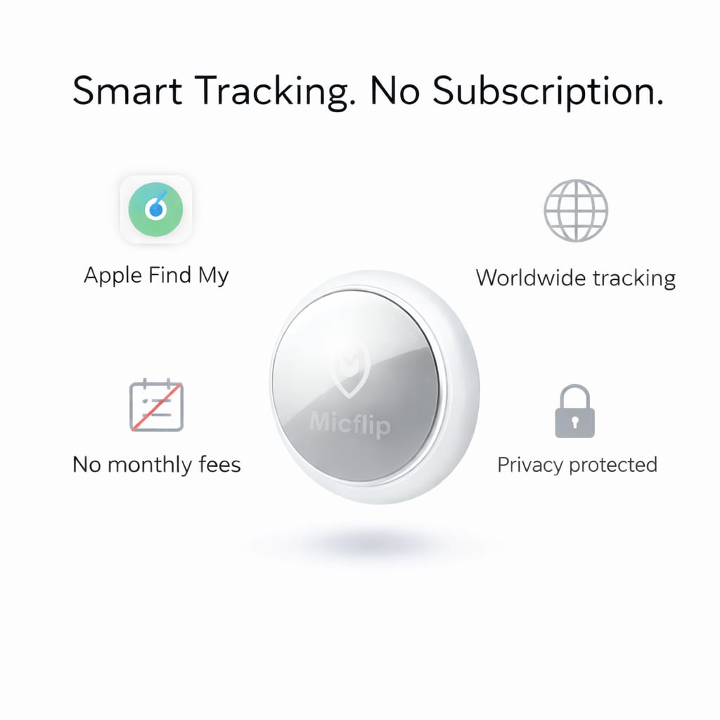 Micflip is an MFi-Certified smart tracker, meaning it meets Apple’s strict standards for security, reliability, and Find My compatibility — with no monthly fees, strong privacy protection, and a long-lasting replaceable battery.