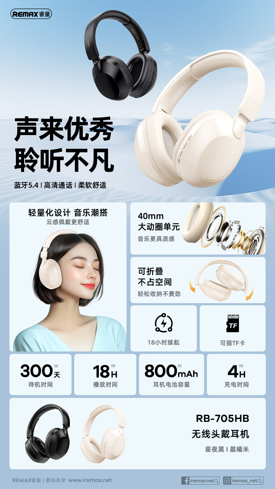 The Remax RB-705HB Wireless Headphones are designed for comfortable, flexible listening at home, during commutes, or while studying and traveling. With a lightweight over-ear design and multiple playback options, they adapt easily to different daily routines.